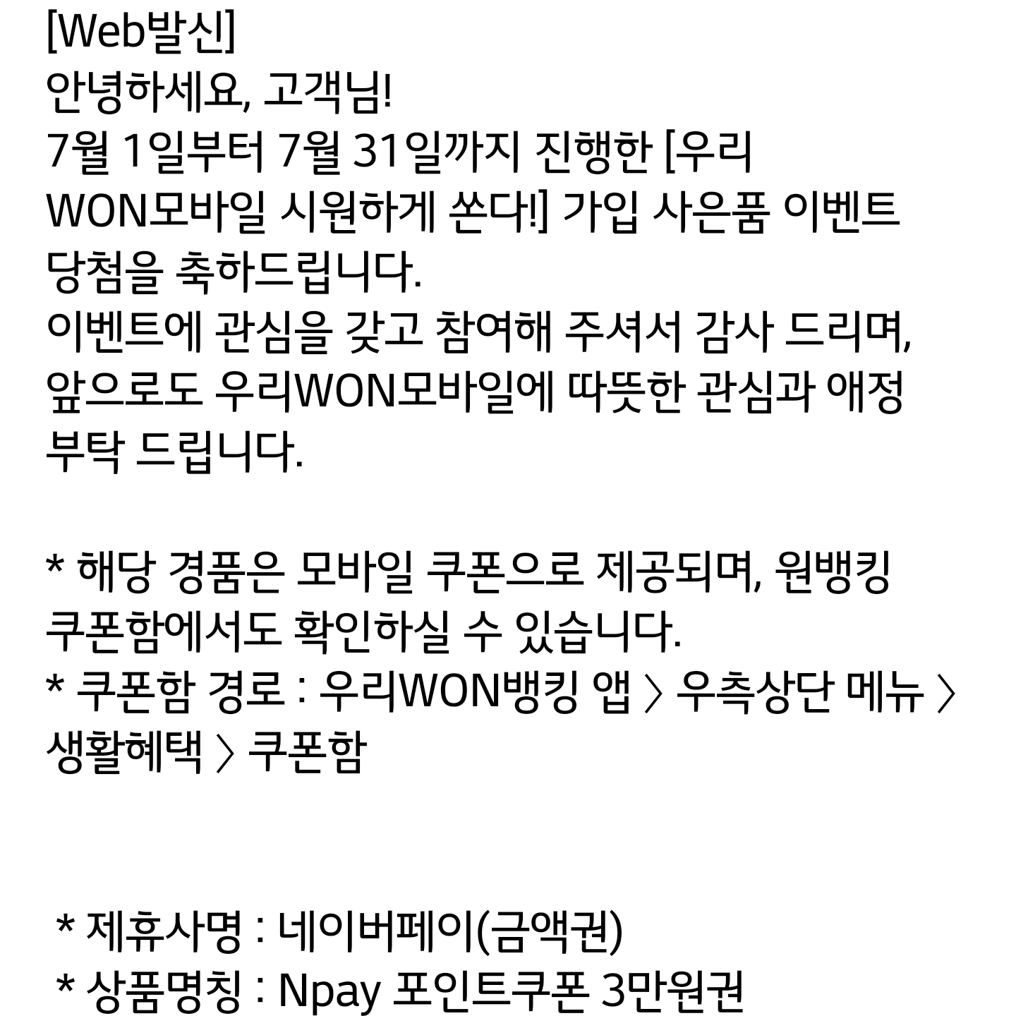 문자를 못받더라도 뱅킹앱 쿠폰함에서 확인 가능해서 마음이 편안